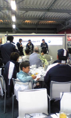 ニックとクビサが パドックに挨拶に来ました。