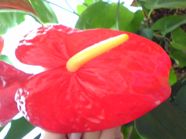 開いたばかりのアンスリュウム〜ステキな赤です。p(^^)q